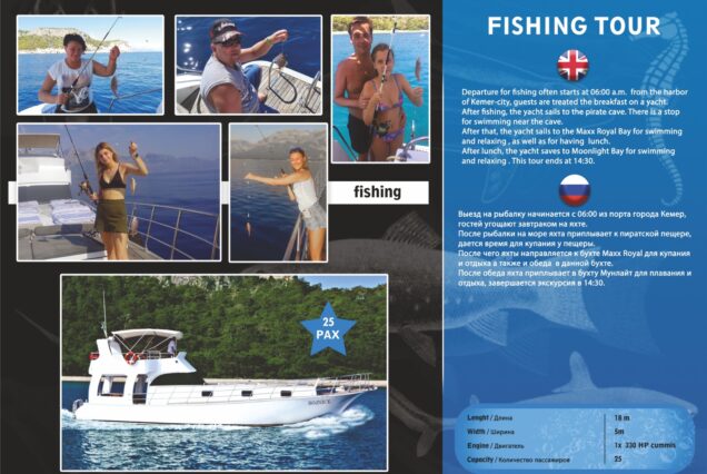 Antalya Fishing Tour is a calm and peaceful experience that offers the pleasure of fishing in the clear waters of the Mediterranean. Experience the passion of fishing by spending a beautiful day in serenity at sea.