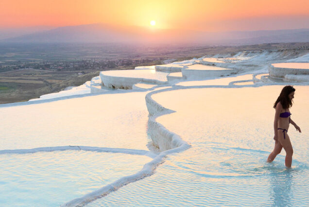 Walk barefoot on snow-white travertine terraces, explore the 2,000-year-old ruins of Hierapolis and swim in the legendary Cleopatra Thermal Pool — all in a single day from Antalya.